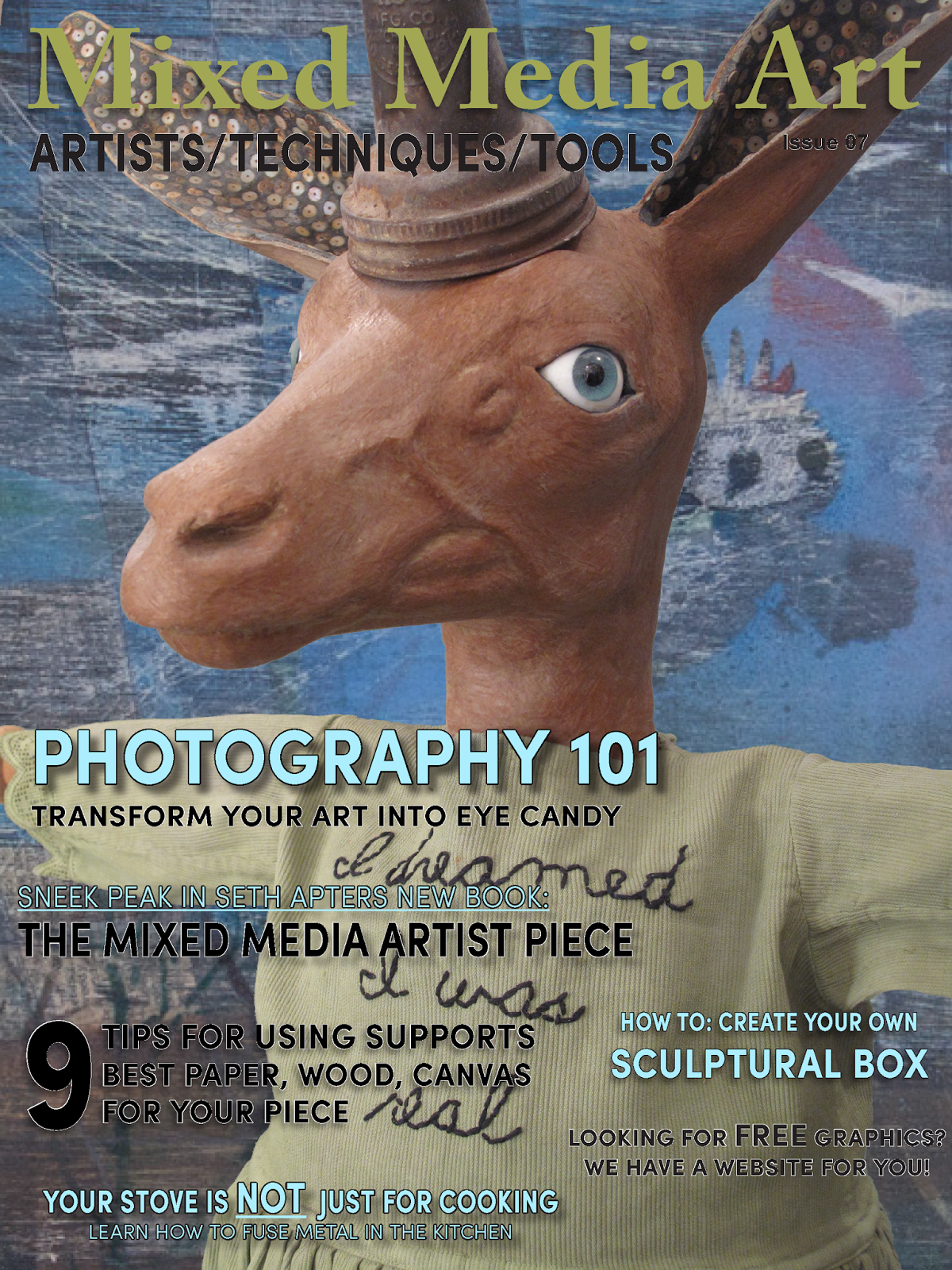 In the past year, 10 issues of The Mixed Media Art Magazine have been released and each one is filled cover to cover with creative inspiration. Though published out of Portland, Oregon, this digital magazine is international with regard to both the editorial team and the artists it spotlights.