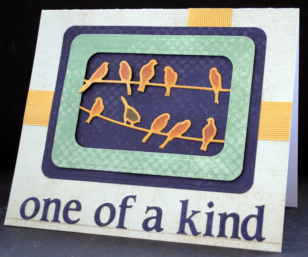 this card was very appropriate. I often feel like that "odd man out" bird. I'm into crafts and most of friends aren't interested so I'm on my own a lot. Your card is great, as are the Spellbinders dies. I have quite a few and they always perform excellently. I like to fussy cut but having help really makes creating my cards go faster and easier. thanks. txmlhl@yahoo.com